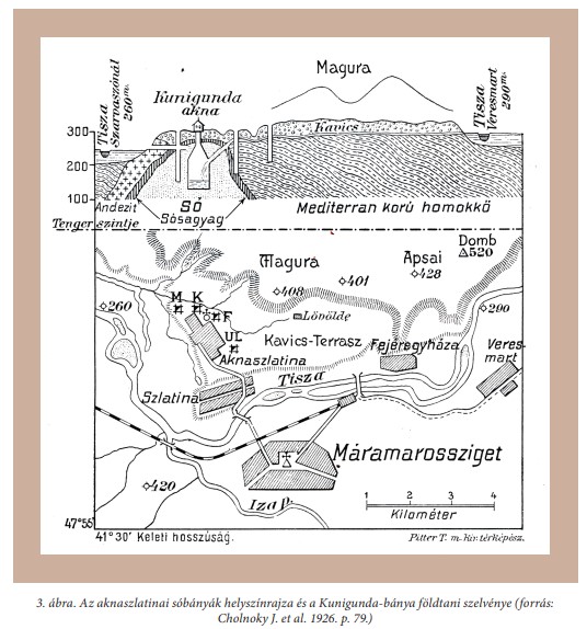 A Máramarosi-medencében, a ma Romániához tartozó Máramarosszigettől (Sighetu Marmației) északra a Tisza völgyében, de már Ukrajna területén egy kavicsterasz alatt fekszik a mintegy 1,9 km2 kiterjedésű, körte alakú aknaszlatinai sódóm. A Tisza dél felől széles kanyarral megkerüli ezt a felemelkedő sódómot (sódiapírt), amelynek hosszabb tengelye körülbelül 2400 m, legnagyobb szélessége körülbelül 1300 m, a mélysége pedig több mint 600 m (3. ábra). A sódóm eltemetett helyzetben van, átlagosan 25–30 m vastagságban kaviccsal, homokkal és néhány méter vastag vízálló sóagyaggal (pallaggal) fedve (Szokol P. 1879, Cholnoky J. et al. 1926, Schmidt Eligius R. 1941, Réthy K. 2010). A korszerű sóbányászat a 18–19. század fordulóján kezdődött Máramarosban, legfontosabb helyszínei Rónaszék, Aknasugatag és Aknaszlatina voltak. A bányák kincstári tulajdonban voltak, azokat tisztjei vezetésével a kamara művelte, a só termelése és kereskedelme pedig kincstári monopóliumnak számított. Az intenzív sóbányászatnak köszönhetően az 1860-as években a magyarországi termelésnek több mint 50%-a került ki a máramarosi bányákból, ezen belül az aknaszlatinai sóbányák az országos kitermelés 23%-át adták. 1880 után a bányaigazgatóság Aknaszlatinán működött, és mind Rónaszéket, mind Aknasugatagot annak rendelték alá. Aknaszlatinán az ipari méretű sóbányászat 1778-ban kezdődött. Összesen 10 sóbányát nyitottak meg (4. ábra), abból kilencben termeltek; napjainkra azonban egy sem maradt meg, mindegyik vízbetörés áldozatául esett. Az alábbiakban olvasható a sóbányák neve a bányák megnyitásának és pusztulásának időpontjával, valamint néhány rájuk jellemző tényező megemlítésével: